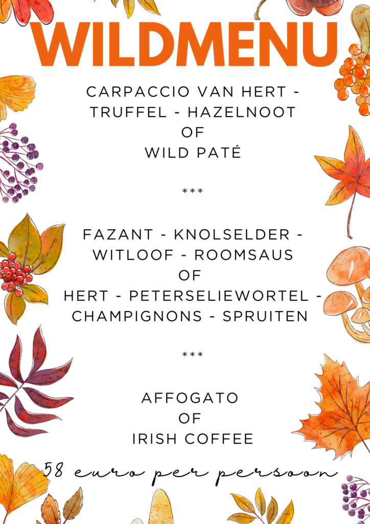 Ieder seizoen proberen wij het beste dat moeder natuur ons te bieden heeft om te toveren tot een heerlijk gerecht op uw bord. In de herfst is dat het smaakvol wild. Dit zijn onze suggesties